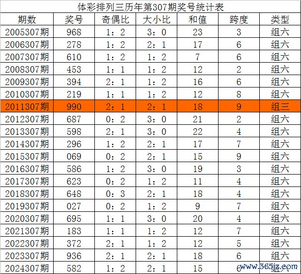 体彩陈设三积年第307期开出奖号区别为:968、278、610、453、394、219、990、687、598、296、069、586、623、648、027、695、183、372、936、582。统计详见下表: